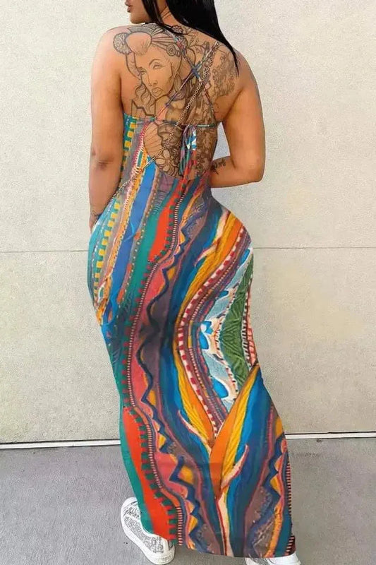 Siren Multicolor Striped Bodycon Mini Dress - Halter Statement Piece | VERONEEKS